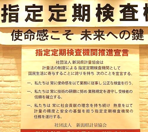 一般社団法人新潟県計量協会は計量法の制度による指定定期検査機関として国民生活に寄与することに誇りを持ち、次のことを宣言する。