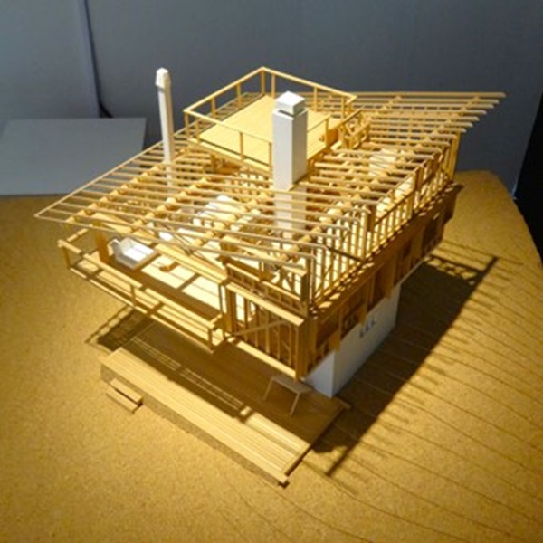 吉村順三の軽井沢の山荘の軸組模型。