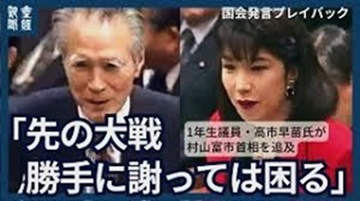 ├高市早苗氏、村山富市首相に「先の大戦、勝手に謝っては困る」1年生議員のときに追及(1994年)