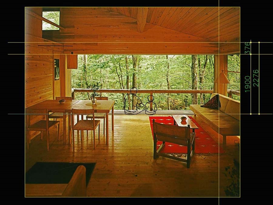高さ関係に行きます。もういちいち上げませんが、一般の人が許容できるところまで大きく譲歩したという感じですね。「軽井沢の山荘」の高さ寸法は、自邸だからできる建築家の強烈な自己意識と言うことを、再度確認することになってますね。