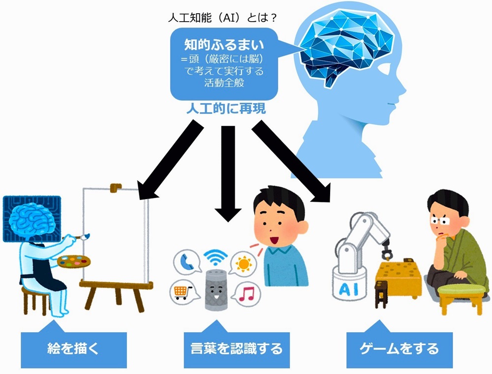知的活動の模倣: 人間の知的な作業(言語理解、推論、予測など)をコンピューターで実現します。
