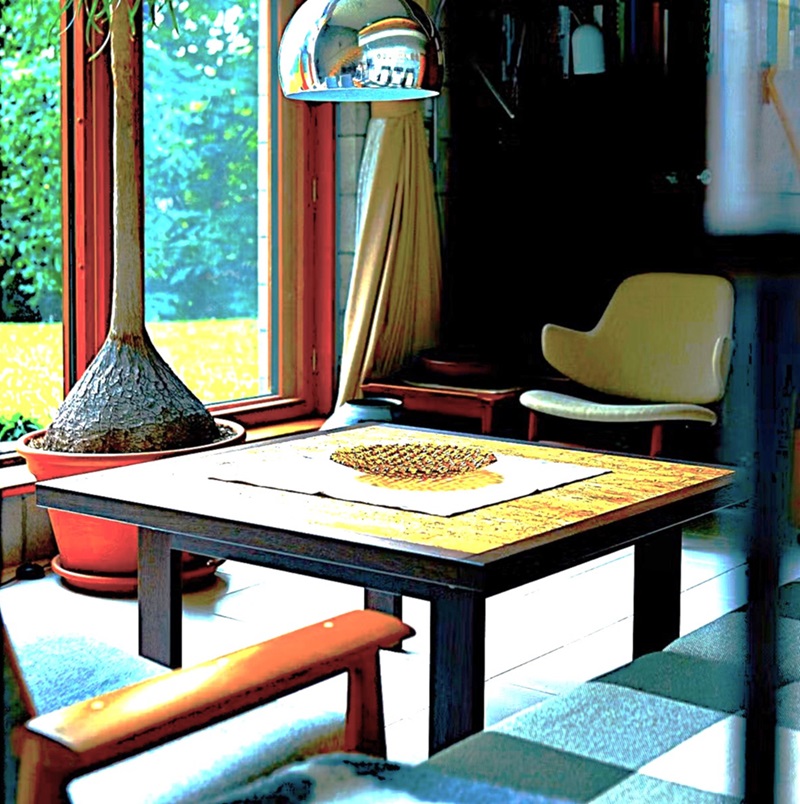 織田憲嗣(おだ のりつぐ)邸に据えられた家具。邸は北海道・旭川空港から車で2分。その後に札幌に移住。椅子研究家。東海大学名誉教授。大阪芸術大学芸術学部デザイン学科卒業。
