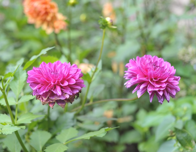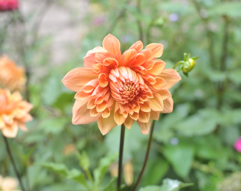 オレンジ色のダリア。菊の花の色を思わせる。豪華だ。メキシコ原産のキク科の多年草。青と緑の花色はないという。