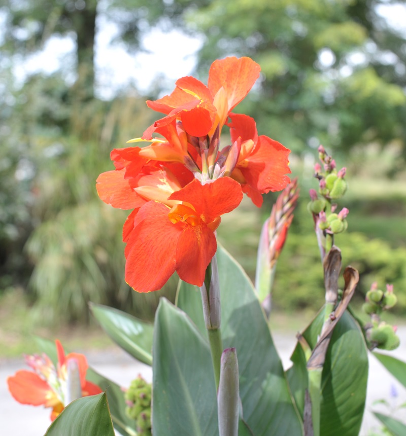 カンナの赤い花。熱帯アメリカ原産の球根植物で夏の強い日差しにも強く、花期は6月ころから霜が降りるころまで。