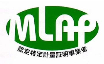 この標章は、特定計量証明事業者認定制度(MLAP:Specified Measurement Laboratory Accreditation Program)の略称(MLAP:エムラップ)をデザインしたもので、計量証明事業登録を受けている旨の標章(天秤マーク)とはデザインが異なる。
